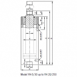 | YH-20/250 | 410 | 660 | 382 | 85 | 60 | 42 | 37 | 59 | - | 5 | 22 | M36x2 | 23 | - | - | M45x2 | 40 | M85x2 |
