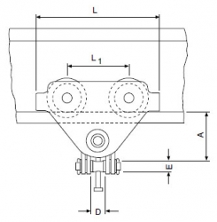 • Винтовой шпиндель обеспечивает быструю установку на балку вручную в зависимости от ширины полки.