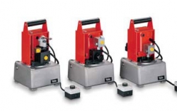 Идеальны для монтажных и ремонтных работ. Двуступенчатый принцип подачи масла обеспечивает быстрый выход штока домкратов. Включение мотора достигается дистанционно через кабель (2 м), при этом двигатель стартует также при полной начальной нагрузке. Для снижения собственного веса насосы типа PY-03 оснащены алюминиевым баком, типа PY-04 - полиамидным баком.