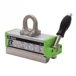 Грузоподъемные магниты FX-V сконструированы для использования в металлургической, судостроительной и контейнеростроительной отраслях. Их удлиненная конструкция позволяет поднимать узкие профили и двутавры (с фиксацией магнита на полке). Максимальная грузоподъемность достигается даже при сравнительно небольшой толщине двутавра. Благодаря углу 90° между магнитными поверхностями магнит может безопасно поднимать угловой профиль. При подъеме горячих грузов прямой угол между магнитными поверхностями защищает магнит от перегрева.